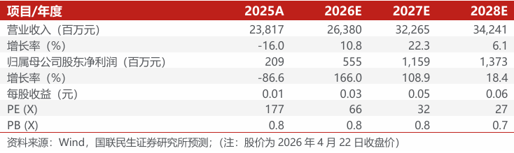 公司海则滩项目持续推进,未来盈利能力有望持续改善,我们预计2026-2028年公司归母净利润为5.55/11.59/13.73亿元,对应EPS分别为0.03/0.05/0.06元/股,2026年4月22日股价的PE分别为66/32/27倍。维持“谨慎推荐”评级。